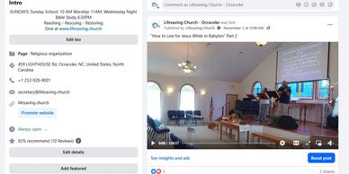 You can watch Sunday services live or later by visiting our Facebook Page.